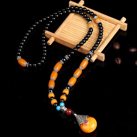 Ethnic Style Long Necklace Water Drop Pendant Agate Chain Women Retro Jewelry Accessory Black Walmart Canada